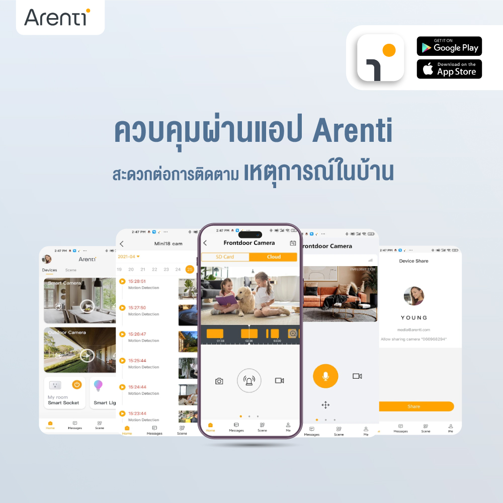 6. **การบันทึกภาพแบบ Real-Time**: สามารถดูภาพแบบ Real-Time และแชร์การเข้าถึงกล้องกับคนที่คุณให้ความไว้วางใจได้ผ่านแอป Arenti อย่างง่ายดาย