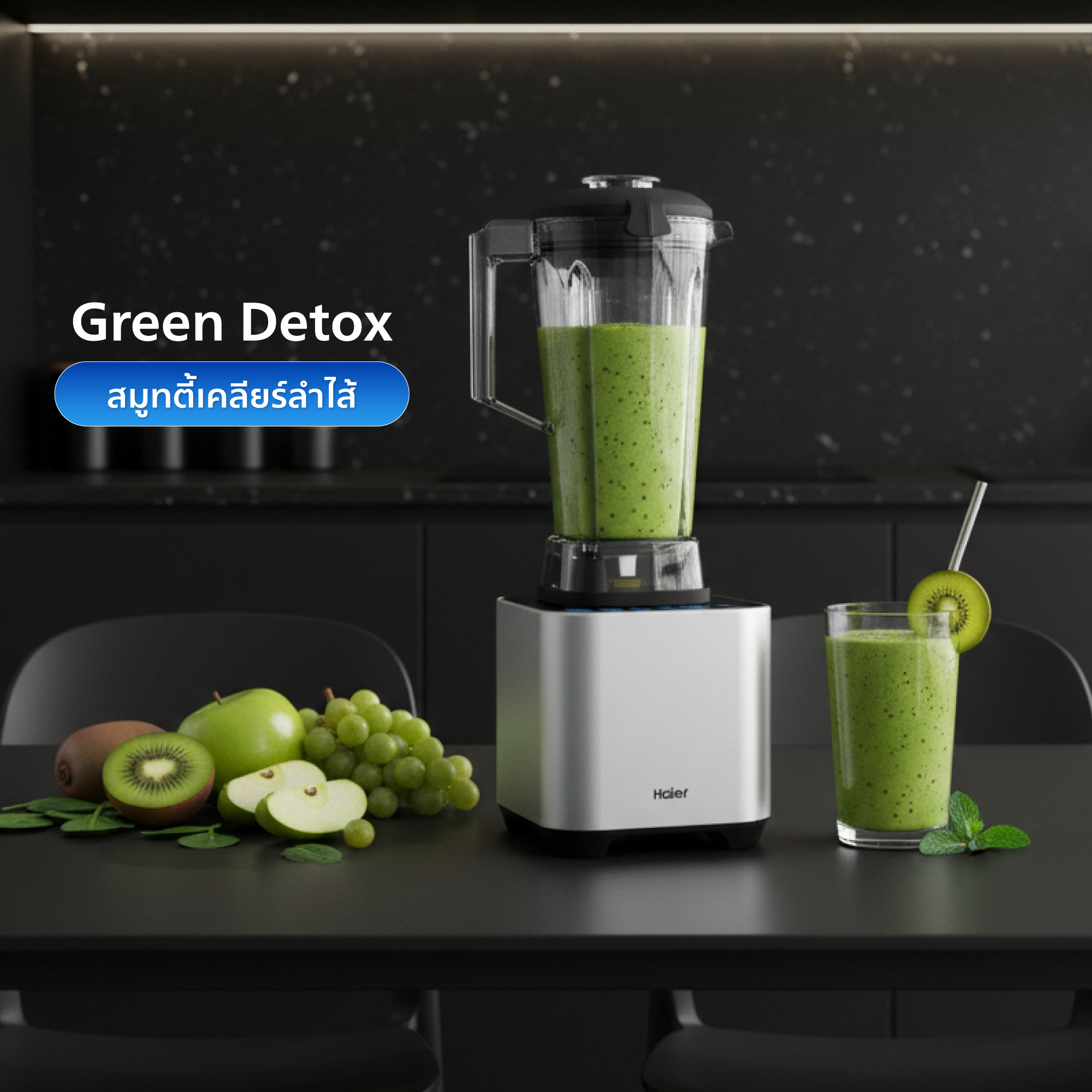 สำหรับวันที่รู้สึกหนักท้องหรือต้องการดีท็อกซ์ง่าย ๆ เมนูนี้คือคำตอบ! ด้วยพลังปั่นสูงของ Haier จะเปลี่ยนผักแข็ง ๆ ให้เนียนละเอียดจนดื่มง่ายเหมือนน้ำผลไม้