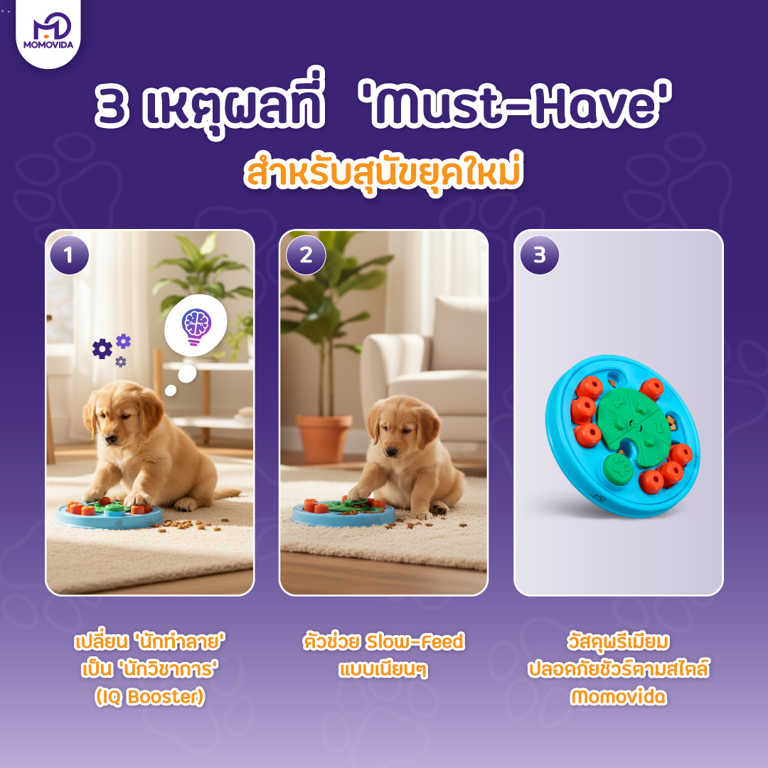อย่าปล่อยให้น้องหมาของคุณเบื่อจนเหงา! อัปเกรดไลฟ์สไตล์ให้น้องด้วย MOMOVIDA DT-2 วันนี้ เพราะความฉลาดและความสุขของน้อง...สร้างได้ด้วยการเล่นครับ!